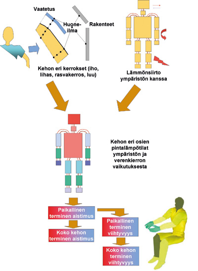 Suomessa on aiemmin tutkittu lämpöviihtyvyyttä ihmistä simuloivan lämpönuken avulla muun muassa TKK:lla. VTT ei käytä tutkimuksissaan nukkea, vaan omaa (HTM) Human Thermal Model – tietokonemallia. Malli perustuu tunnettuihin yhtälöihin ihmisen reaktioista eri lämpötiloihin. Ihminen on siinä jaettu lämpöteknillisiin osiin, joihin voidaan liittää myös vaatetuksen osuus. Vastaavia malleja on aikaisemmin kehitetty ja käytetty muun muassa NASAn tutkimuksissa, mutta näistä poiketen VTT:n mallissa on mukaan otettu myös rakennuksen malli.