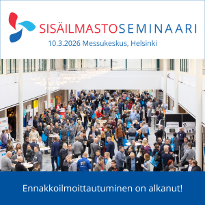 Majoittuminen: Olemme varanneet pienen kiintiön huoneita Original Sokos Hotel Triplaan. Kiintiö on voimassa 17.2.2020 saakka. Teethän varauksesi suoraan Sokos Hotels Myyntipalveluun ja mainitse varausta tehdessäsi ”Sisäilmastoseminaari” (puh. 020 1234 600).